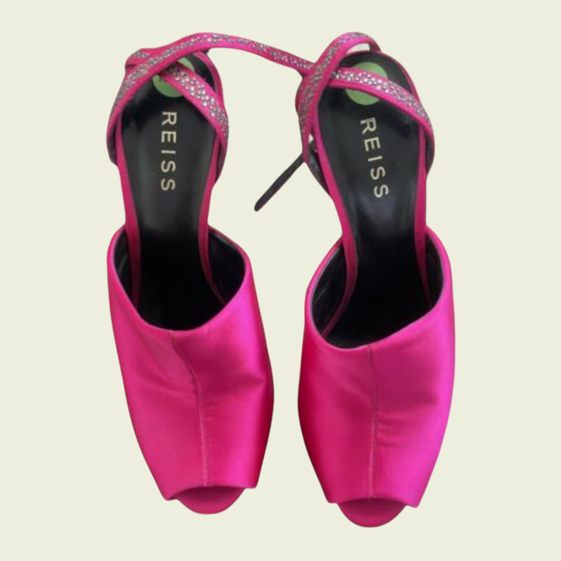 Reiss Ladies Fuschia Pink Satin Stiletto Crystal Peep Toe Shoes UK 6